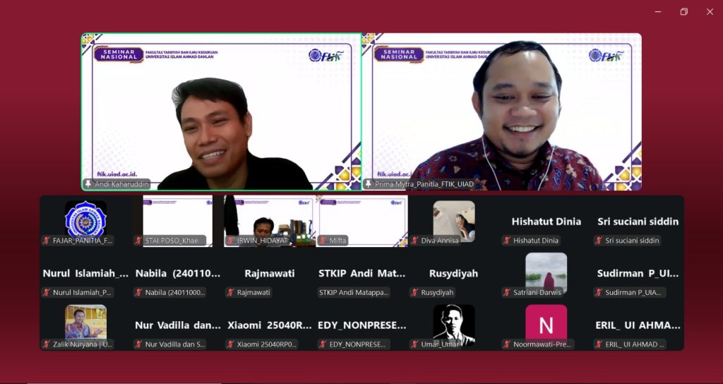SINJAI, uiad.ac.id — Fakultas Tarbiyah dan Ilmu Keguruan (FTIK) Universitas Islam Ahmad Dahlan (UIAD) Sinjai menggelar Seminar Nasional secara virtual dengan mengusung tema “Humanis & Digital: Arah Baru Pendidikan Menuju Indonesia Emas 2045” pada Kamis, 12 Februari 2026.